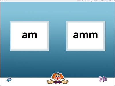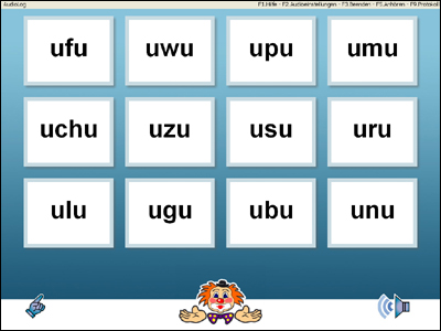 auf die entsprechenden Schriftbilder zuordnen. Es können auch mehrere Silben nacheinander abgespielt werden. Auswahlmenge